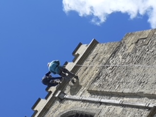 The weather couldn’t have been better, sunny with only a very gentle breeze. I never knew that Hugh had God on his side, but maybe the vicar and the bishop who were both also abseiling had been praying for calm weather.